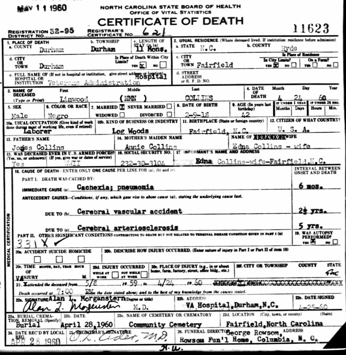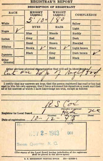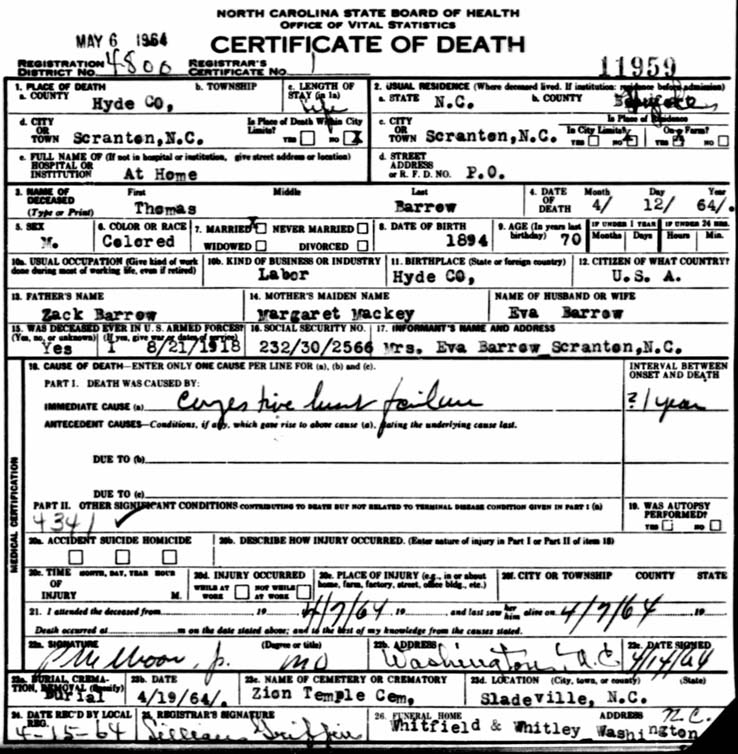 | Clayton, Edward Fitzgerald | Feb. 8, 1973 | Aug. 30, 1996 | US Navy | Clayton Cemetery, Scranton, Hyde Co., NC |