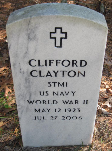 | Clayton, Clifford | May 12, 1923 | July 27, 2006 | STM1 - US Navy - World War II | Clayton Cemetery, Scranton, Hyde Co., NC |