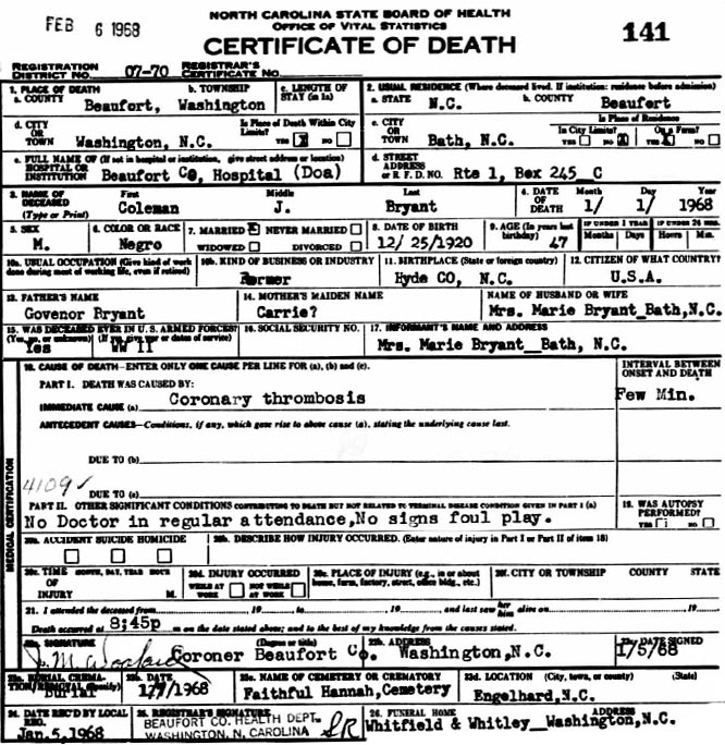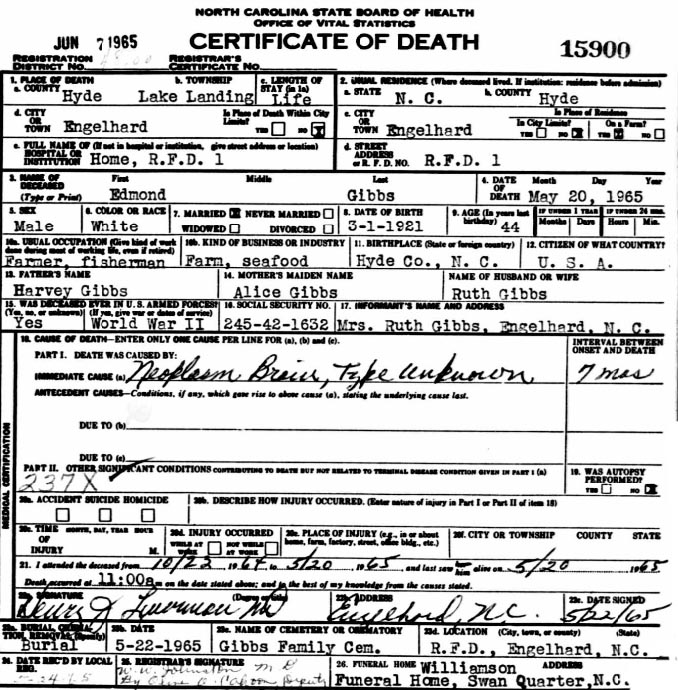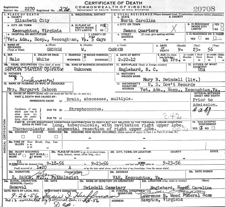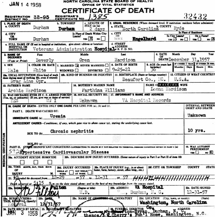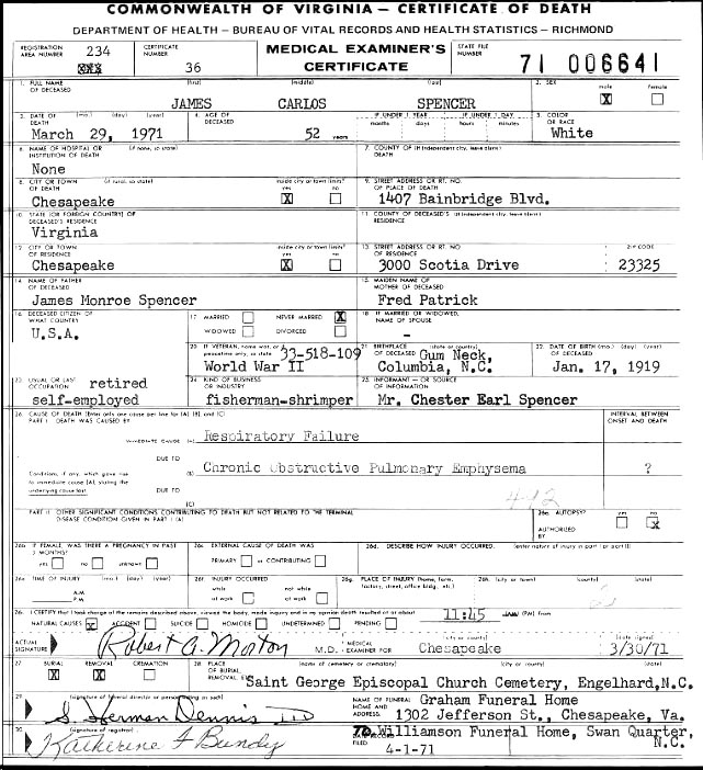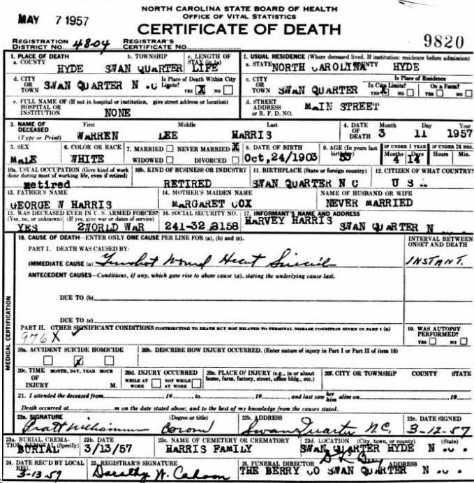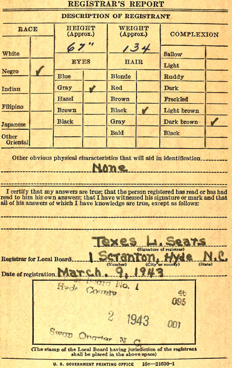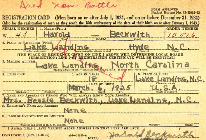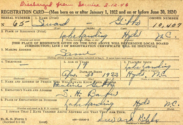 Williams, Henry Guion (1915 Carteret Co. - ????) |