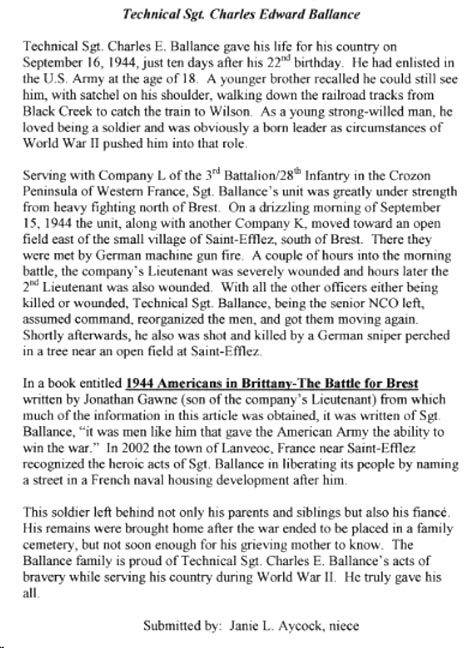 Ballance, Charles Edward (1922 - 1944 France) |