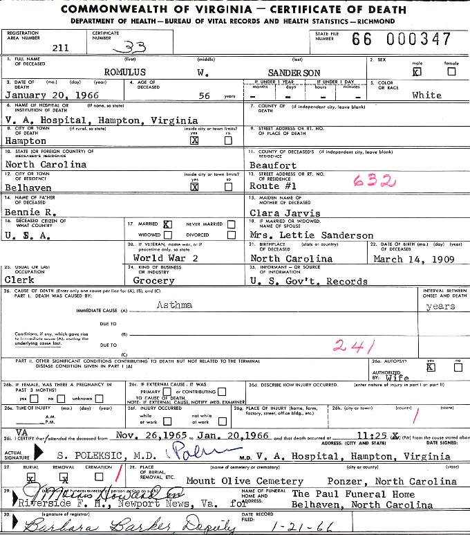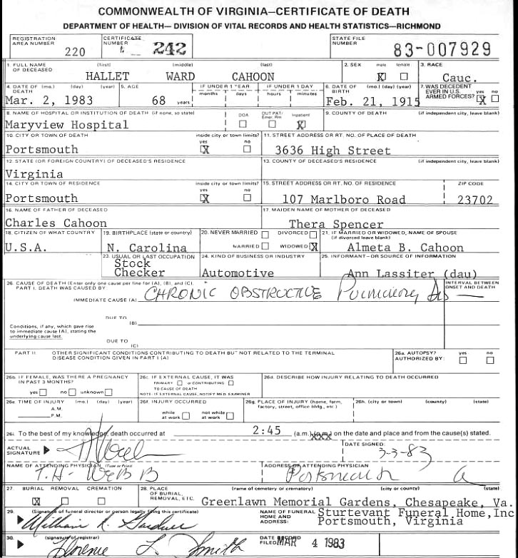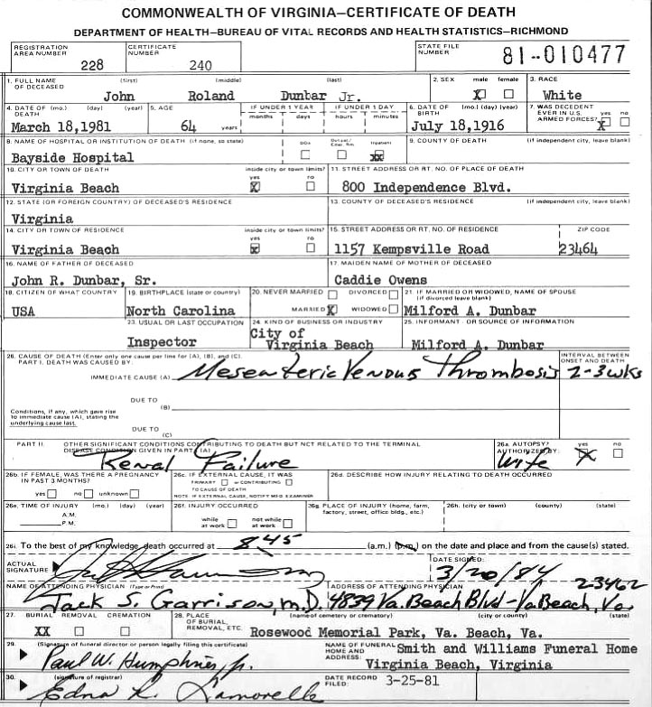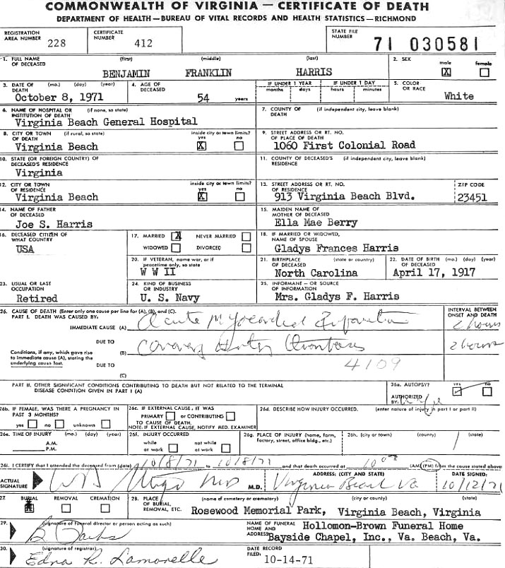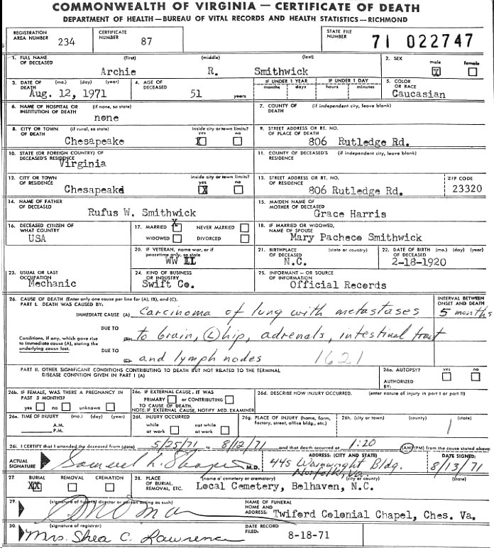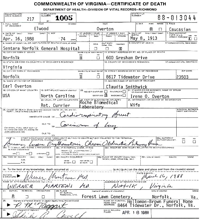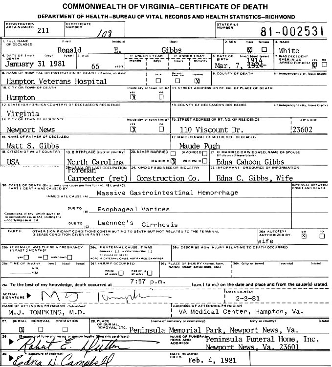 [see obituary] [see military bio] |