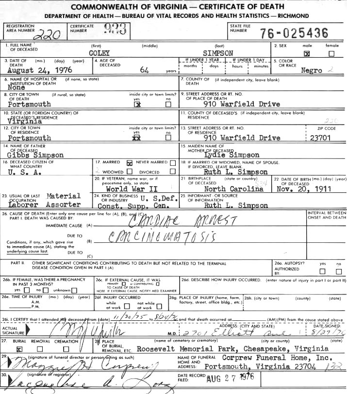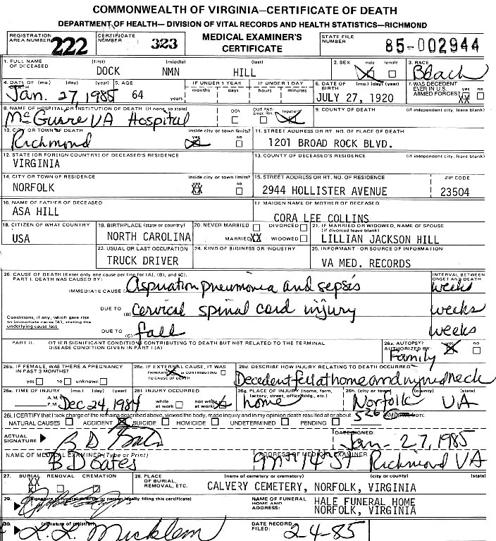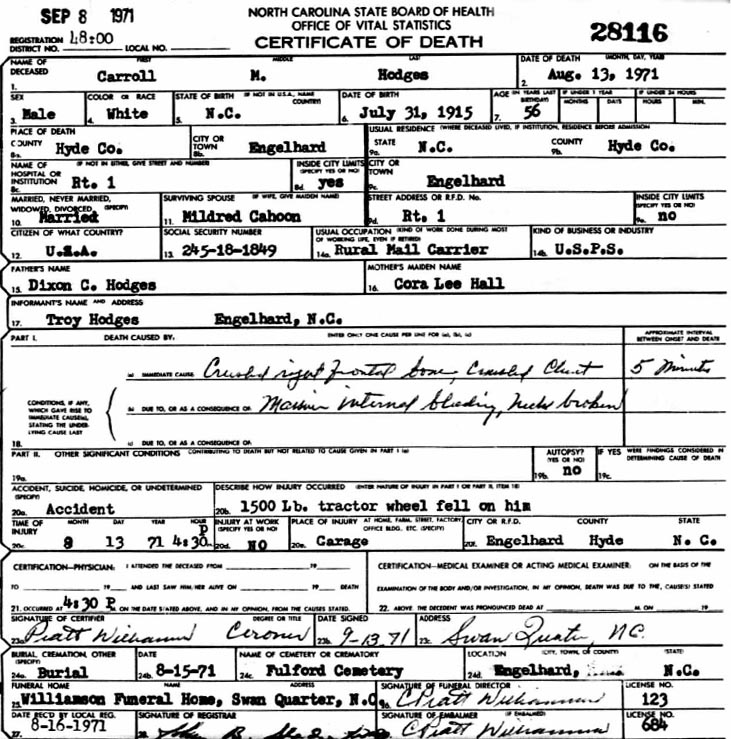Motor Vehicle Comp [see photo] [see death certificate] |