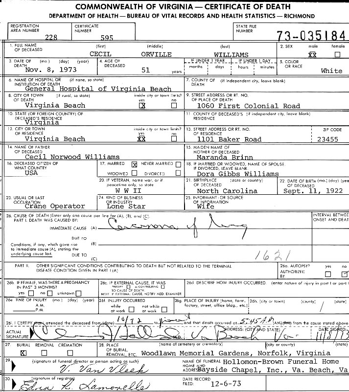 Williams, Cecil Orville (1922 - 1973) |