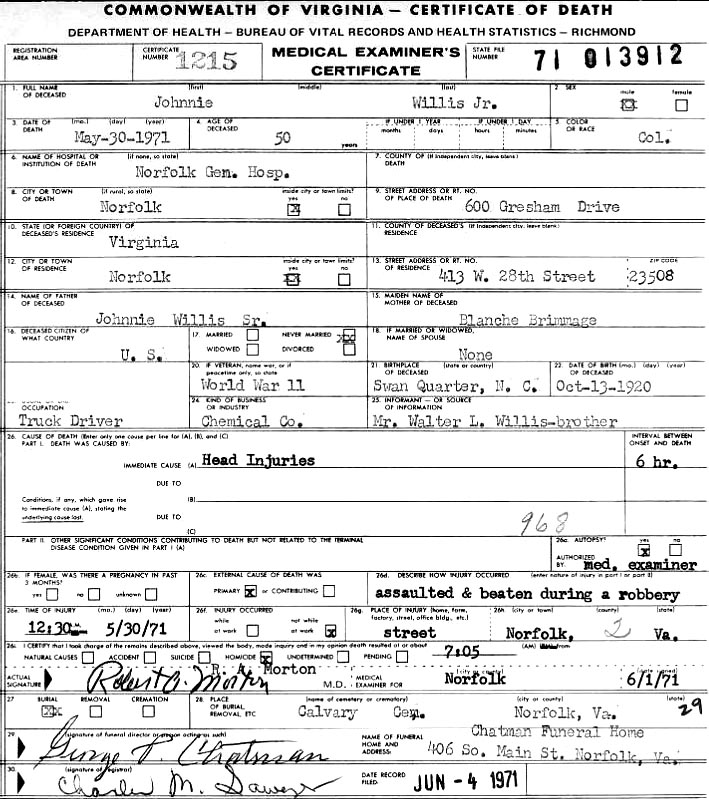 Willis, Johnnie, Jr. (1920 - 1971) |