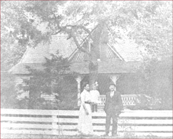 The above photograph appeared in the Coastland Times newspaper on January 29, 1981 in a lengthy article written about John W. Rollinson. His house (shown above), was still standing in 1954 but the property was sold out of the Rollinson family and the house, one of the oldest on the island, was torn down about 1971. This picture was taken around 1912. William Harris Rollinson, son of John W. Rollinson, his wife, Theresa Goodwin, and their daughter Mary Rollinson are pictured in front of the Rollinson home in Hatteras Village. The house was built with timbers from wrecked ships.