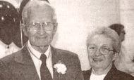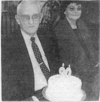 Leonard PUGH of the Gulrock community recently celebrated nine decades of life. His children, Elsie MOORE and Leonard PUGH, JR., gathered with other family members at a local restaurant to commerate his 90 years. Seated next to PUGH is friend Verna CARAWAN. (The Coastland Times - Tuesday, February 16, 1999; pg. 7B)