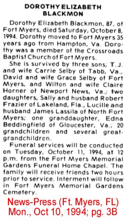 BLACKMON, Dorothy Elizabeth