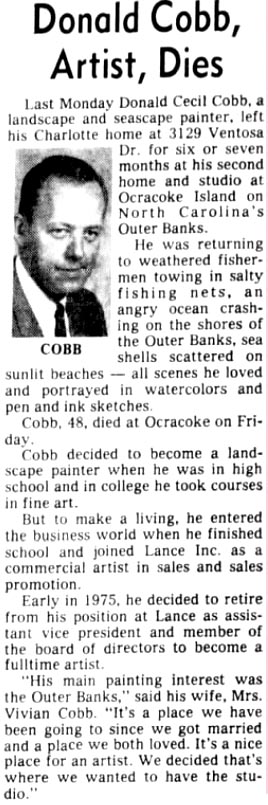 The island was saddened to learn of the passing of the proprietor of the former “Cobb House” women’s boarding house on Ocracoke, Vivian “Vickie” H. Cobb, 88, of Hillsborough and Ocracoke, who died peacefully on June 29 in Duke Hospital. Born Nov. 15, 1928, she was the only child born to the late Horace Osborne and Ferrie Elizabeth Johnson Hovis in Charlotte. Vickie attended Erskine College in Due West, S.C., and Queens College in Charlotte, graduating with honors in classicalmusic in 1951. She became the first organist for Memorial Methodist Church and began teaching piano in her parents’ Parkwood Avenue home. Her Charlotte organist and teaching careers spanned five decades. In 1999, she relocated to Hillsborough, where she continued teaching until her 2013 retirement. She met her future husband, artist Donald Cobb, on a blind date while he was stationed at Fort Jackson, S.C., during the Korean War. The couple wed and had a daughter, Candice, in 1957. A few years later, Vickie and Don were stranded in a storm on North Carolina’s remote Outer Banks. They fell in love with Ocracoke, and decided to build a house and art studio in Oyster Creek there. In the early 1970s, Don realized a lifelong dream and opened his art studio to the public. After Don’s untimely death in 1977, Vickie opened the Cobb House, a popular boarding house for college students summering on Ocracoke. The Cobb House thrived for 35 years thanks to Vickie’s sense of humor and easygoing style. House rules included, “no kegs on the porch” (unless they wash up in a storm), “date according to need” (if house needs repairs, find matching skills), and “early curfews” (LEAVE the house so Vickie can sleep). Many Cobb House alumni live on Ocracoke today, and regularly reminisce about their Cobb House misadventures. Vickie’s favorite pastimes included playing and listening to classical music, reading biographies, spending time with her favorite cat, “Mozart,” and walking the Ocracoke beach. She loved her students and younger friends, and frequently commented that she “didn’t like old people.” Her quick wit and straightforward approach to life were infectious, and her best times were spent laughing on Ocracoke with Cobb House girls and her BFF Phyllis Wall. Her father, a career employee of Scott Drug Company, served as the family cook and neighborhood air raid warden during WWII. Her mother worked for Belk’s Department Store and enjoyed traveling the world in retirement. Vickie is survived by her daughter, Candice, and partner, Martha McMillan, of Hillsborough and Ocracoke; cousins Lucille McCorkle, Jean Spurrier, Terry McCorkle Elder, and David McCorkle of Charlotte; Mozart, the big fine cat; and a very long list of friends, animals, and extended family. A Hillsborough memorial service will be held at 2 p.m. Monday, July 10, in St. Matthews Episcopal Church with a reception afterwards, and an Ocracoke funeral service will be 11 a.m. Thursday, July 13, in the Ocracoke United Methodist Church followed by lunch in the rec hall. Burial will be in the Ocracoke Community Cemetery. The family would like to thank The Pavilion at Croasdaile, Brookdale Meadowmont, and Hospice of Alamance-Caswell for their care and kindness. (The Ocracoke Observer - July 1, 2017)
