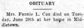 Mrs. Clara B. CLARK, consort of Dr. E. Clark of Middleton, died September 6th with interment in Oakdale Cemetery on Monday. Mrs. Clark was sister to E.S. Hoyt, Sr. of this town. (The Washington Gazette - Thursday, September 11, 1890; pg. 3; column 3) [Posted here with kind permission from John H. Oden, III]