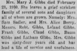 GIBBS, Bessie Mann [Apr. 5, 1879 - Sept. 7, 1934]