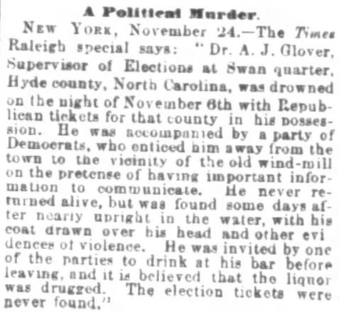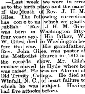 CURRITUCK ITEMS - The son of Capt. Seth GOWER died on the 14th at Smith Creek. (The Washington Gazette - Thursday, October 25, 1894; pg. 3; column 3) [Posted here with kind permission from John H. Oden, III]