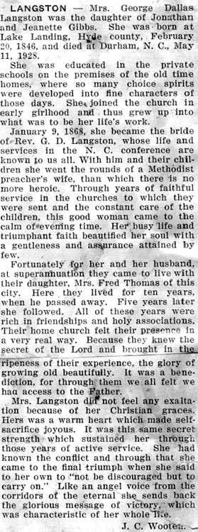 LANGSTON, Mrs. George Dallas [Sarah Ann Gibbs Langston]