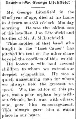 NORFOLK - Arthur A. LITCHFIELD, 80, of the 200 block of Rainbow Lane, died Feb. 1, 1991, in a nursing home. Mr. Litchfield, a native of Engelhard, N.C., retired from Iron Workers Local 79. He was the widower of Julia E. Litchfield. Survivors include two stepdaughters, Gerry Zirkle of Winchester and Glema Donald of Mechanicsville; three stepsons, Randall B. Owens of Winchester, Rodney F. Owens of Charlotte and Gregory L. Takacs of Chesapeake; a sister, Rosa L. Baker of Fort Smith, Ark.; a brother, Walter C. Litchfield of Elizabeth City; and 12 grandchildren. The graveside service will be conducted at 2 p.m. Monday in Woodlawn Memorial Gardens by the Rev. Willis Switzer. Friends may join the family from 4 to 5 p.m. today at Francis A. Gay Funeral Home, South Norfolk. (Virginian-Pilot - Sunday, February 3, 1991; pg. 2B)