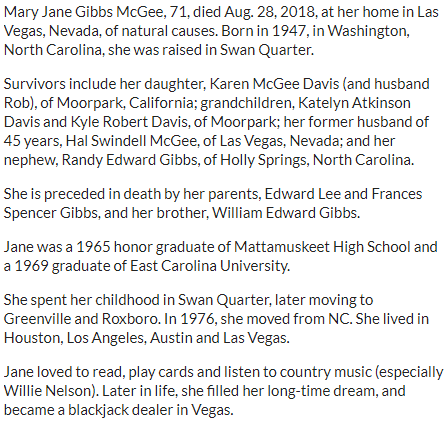McGEE, Mary Jane Gibbs