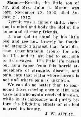 A child of John McKINNEY was burned fatally near Fairfield. (The Washington Gazette - Thursday, February 18, 1892; pg. 3; column 3) [Posted here with kind permission from John H. Oden, III]