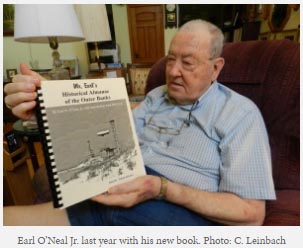 O’Neal joined the Navy Reserve in 1948 and during the Korean War enlisted in the Army Signal Corps. He was selected as one of the first eight people to work at the Army’s experimental nuclear power plant in Idaho. He went on to earn a diploma in nuclear engineering from the University of Virginia and worked on ways to use nuclear energy for peaceful purposes, such as the generation of electricity. O’Neal and his wife, who came to be known as Dee, moved to Ocracoke in 1990, building a home where his grandparents’ house had stood. He then devoted himself to learning and writing about all aspects of Ocracoke history. “Earl collected an unbelievable amount of local island history and genealogy,” said Philip Howard. “Future generations will be forever indebted to him for the amount of information he has unearthed and preserved for Ocracoke.” With that information, O’Neal wrote a number of books covering such topics as the Ocracoke ponies, the Coast Guard and Navy base, “Ocracoke Island, Its People, the U.S. Coast Guard and Navy Base During World War II,” several genealogies of island families and an autobiography titled “One Boy’s Life.” His final book, “A Historical Almanac of the Outer Banks; A Long Voyage Over the Last 488 Years,” co-written with Mel Covey of Hatteras Island, is a pictorial history of the Outer Banks and includes Portsmouth, Beacon and Shell Castle islands. Among his other books is “Ocracoke Island History.” Some of his books can be purchased at the Ocracoke Preservation Society museum, 49 Water Plant Rd. O’Neal designed Ocracoke’s Civil War marker that is part of the Dare County Civil War Trail and was instrumental in the placement of two World War II markers on the island—the Navy Beach Jumpers marker on Highway 12 outside the village and the headstone at the British Cemetery listing the 37 British sailors lost in the sinking of the HMT Bedfordshire. He lectured frequently about island history and served as chairman of many Ocracoke boards and committees. “He was always willing to share his experiences and vast knowledge of history with our NCCAT teachers,” said Alton Ballance, the Center Fellow at the North Carolina Center for Advanced Training. “We will miss him.” O’Neal was a director of the Graveyard of the Atlantic Museum in Hatteras and an associate for the Outer Banks History Center in Manteo. In 2009, O’Neal was awarded North Carolina’s highest civilian honor, the Order of the Long Leaf Pine, for service to his community. The Ocracoke Preservation Society presented him its Cultural Heritage Award in 2014. In addition to his son and daughter, O’Neal is survived by five grandchildren, two great-grandchildren and two great-great grandchildren. (Ocracoke Observer - Wednesday, May 31, 2017)