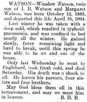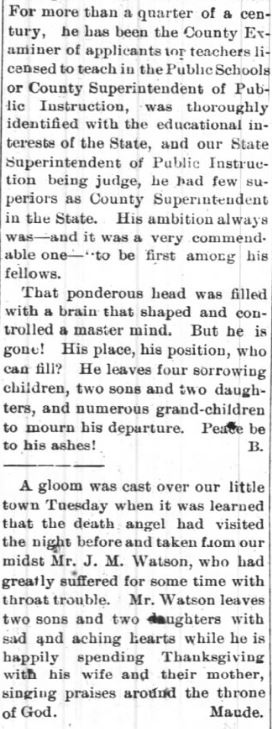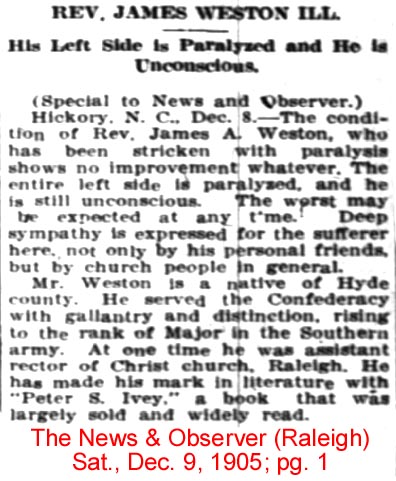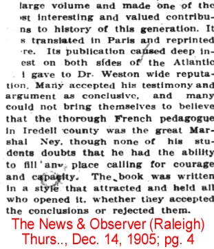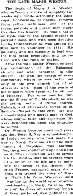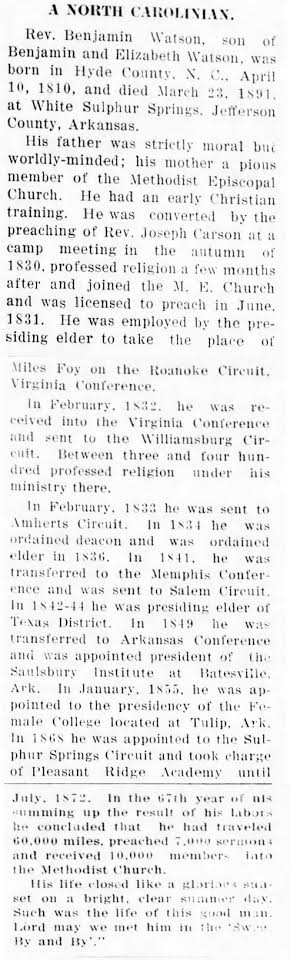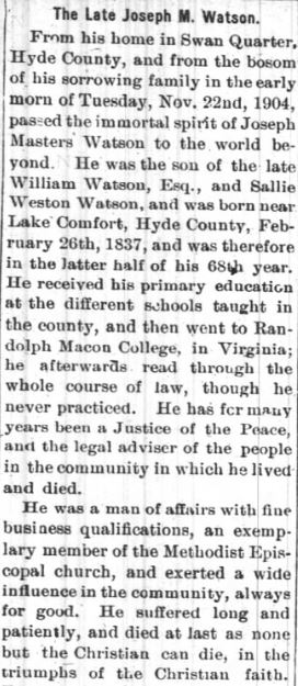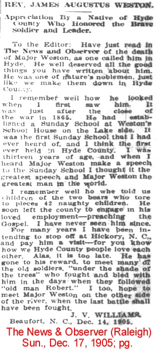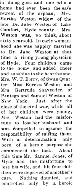 The Weekly Economist - Friday, January 17, 1896; pg. 3 The North Carolinian - Wednesday, January 15, 1896; pg. 3 Washington Gazette - Thursday, January 9, 1896; pg. 2 Goldsboro Weekly Argus - Thurs. Jan, 9, 1896; pg. 2