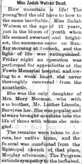 All was done for her that skilled physicians and loving hands of relatives and friends could do, but the Lord needed her and he called her away to Himself. It is our part to submit and say, "His will be done." No earthly power can stay the scythe of the grim reaper--death. She was conscious of her condition through to the last moment, asking her children and friends not to mourn over her. While we know it is all well with her, in our weakness we have to yield to the flesh. She passed away without a struggle, the cold icy hand having gradually closed its clutches about her body. But we triumph in the fact that he cannot reach the immortal soul. The writer visited her a few days before her death. Her testimony was clear, convincing and undaunted.