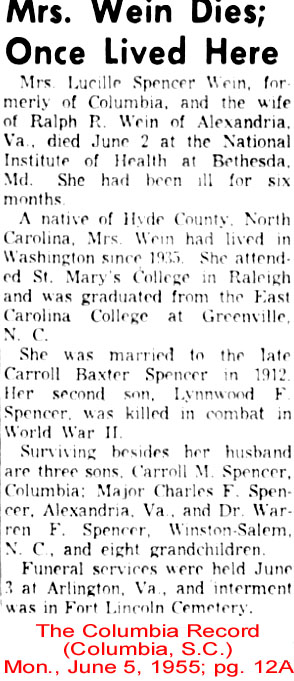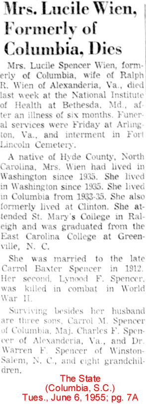 CHESAPEAKE. VA. - Mildred Louise WINEKIN, 77, died May 2. She was born in Fairfield, daughter of the late Herbert and Maude Gibbs Spencer. She was the widow of Paul F. Wineken, Jr. Mrs. Wineken had retired as a home care nurses' aide and was a member of Woodland Heights Baptist Church. Survivors include two sons, W. Eugene O'Neal and Ronnie L. Wineken, both of Chesapeake; two sisters: Doris Yates of Norfolk and Vivian Estes of Virginia Beach: six grandchildren: Kim Davis, Amy Chambers, Tracy Cleghorn, Marcie Gilbert, Bonnie Winekin, and Shelley Winekin; and seven grandchildren. A funeral will be conducted at 11 a.m. Wednesday in Woodland Heights Baptist Church by Dr. Kenneth Barnes, Burial will be in Chesapeake Memorial Gardens. The family will receive friends from 7-8 p.m. Tuesday in Graham Funeral Home, South Norfolk Chapel and at the residence at all other times. (The Coastland Times - Tuesday, May 4, 1999, Page 5A)