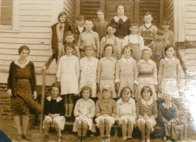 This picture was probably made in the late 1920's. The girl on the bottom step second from the right is Laura Blanche Howard who was born in 1919. If anyone can identify the teacher or any of the other students please send me an e-mail.