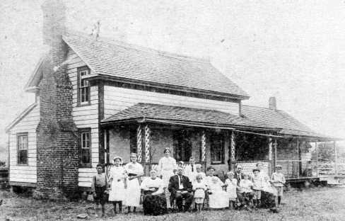 Pictured L. to R. are: Roland Elwood Blake, Ola Cahoon, Bessie Cahoon, Mrs. Mary Williams (seated), Blanche Williams, Mr. Sylvester Williams (seated), 3 boys standing beside Mr. Williams are Cyle, Clifton and Robert Cutrell, Mrs. Verona Cutrell (seated) with baby Lewis, Fred Williams, William Joseph Williams. Sr. (seated) with Rena Bell Williams, Clay Williams, Mrs. Carrie Williams (seated) with baby Laura Gray, and Macon Williams.