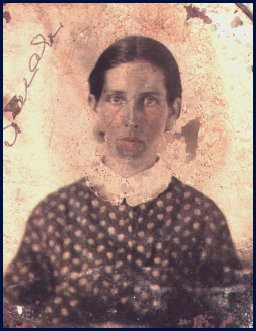 NOTE: Sarah's picture was scanned from a small "Tintype" photo that has turned almost black. No date was found but it appears she may have been in her late 30's or early 40's).