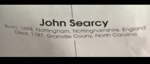 The first one in his family to come to the U.S. was John Searcy born 1694 in Nottingham, England and died in 1787 in Granville County, NC.