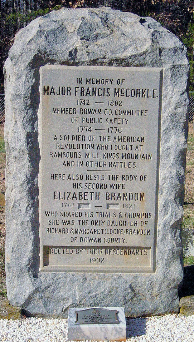 | McCorkle, Major, Francis Marion | NC Militia | The McCorkle Family Cemetery | Catawba Co., NC |