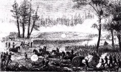 In February 1864 the Thirty-fifth United States Colored Troops (First North Carolina Colored Volunteers) fought in the Battle of Loustee, Florida, where Lieutenant Colonel William N. Reed was killed. Illustration of the engagement from Harper's New Monthly Magazine 33 (November 1866): 718.