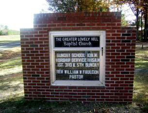 its current location a short distance down the road from the Cemetery. It was at this time that the Church was renamed The Greater Lovely Hill Baptist Church, a name