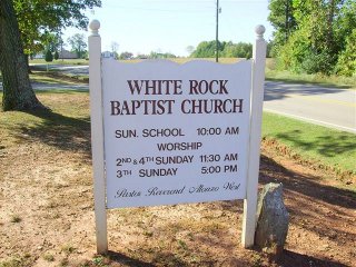 4 miles to the church, which will be on the right side. White Rock Baptist Church is a lovely church with white sidings, sitting on 2 acres of land, just outside of Arcola. It was built in 1950 and sits amidst a very well- tended cemetery; the earliest graves seem to have been for 1960, and it continues to be an active burial site. |