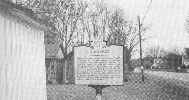 Some of the descendants of James Harris (d125/6) moved to La Grange in West Tennessee before 1850. UPPER RIGHT is a view of Woodlawn, constructed in 1828 at La Grange. BELOW: Historical marker. (Photo by R.E. Harris) |