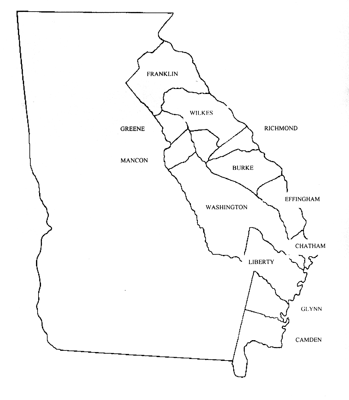 BELOW: This is an approximate view of the map of Georgia in 1797, when Matthew Harris and other family members moved to that area.