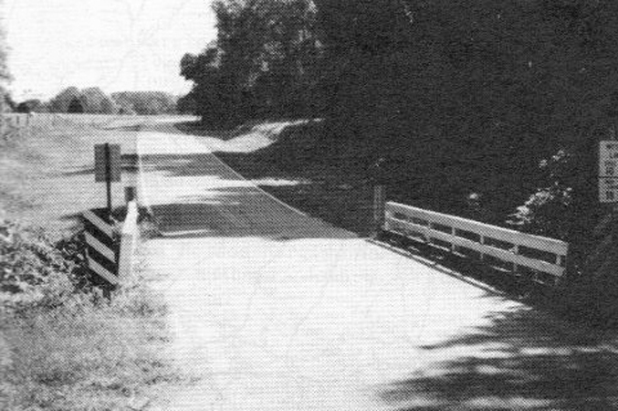 Left: This is a view in 1991 of the bridge over Beef (later Dowtin) Creek, where it crosses Carroll Town Road in Warren County, N.C. Reference graphic on page 131 Matthew Harris— d125/7—lived here until he moved to Greene County, Georgia in 1797. |