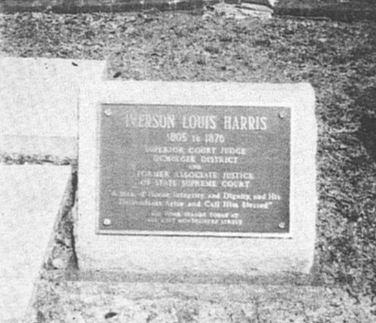 Iverson Lewis Harris (1805-1876) d121/6143 was born in Watkinsville and died in Milledgeville, Georgia. He was a lawyer, a Superior Court Judge, a Justice of the Supreme Court of Georgia, and a citizen of Milledgeville, Georgia. Upper left is a marker to him in the city cemetery in Milledgeville. Lower left and right pictures are of his home in Milledgeville. Later, the same residence became the home of Georgia Congressman, Carl Vinson. (Photos by R. E. Harris) |