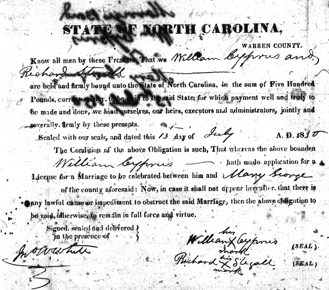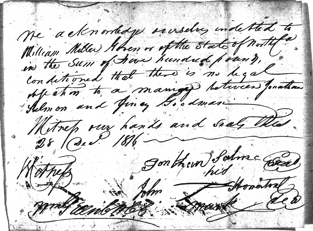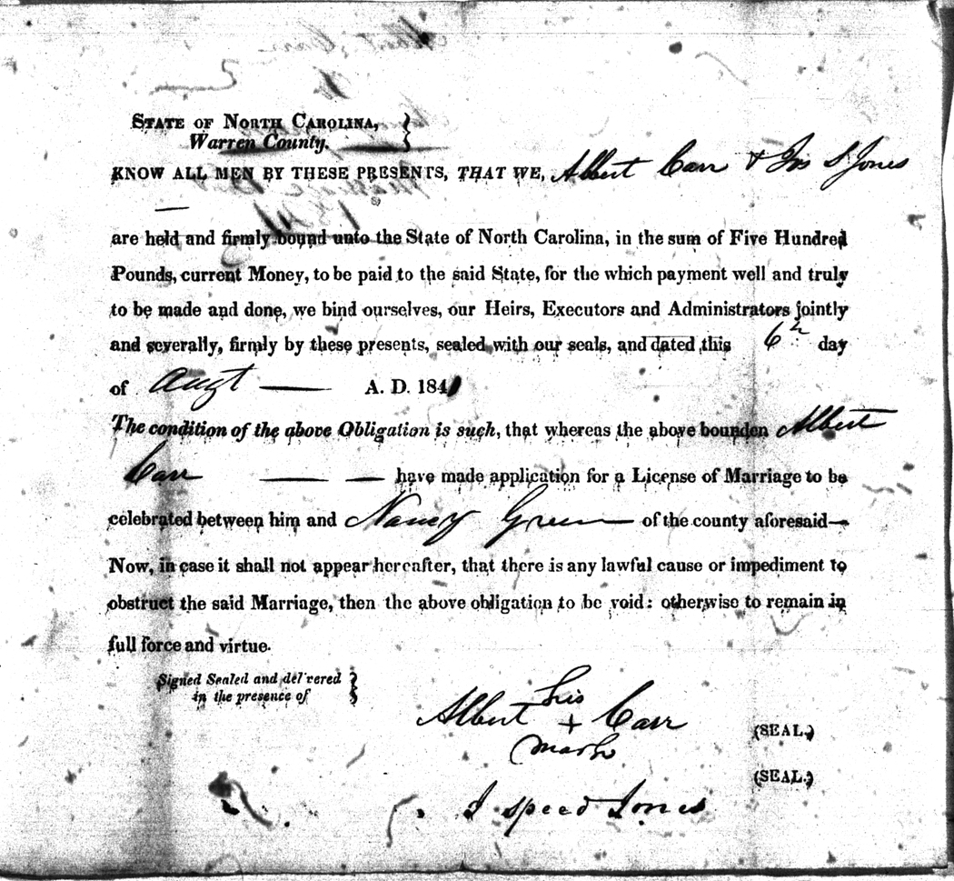 We should all thank Ginger Christmas-Beattie for all the work that has gone into getting the marriage bond images online. Not only has she done them once but twice after she found a way to tease the process to get a clearer image from the old microfilm. This is something I could not have done in years but Ginger has always been able to do more in less time than anyone I know. |