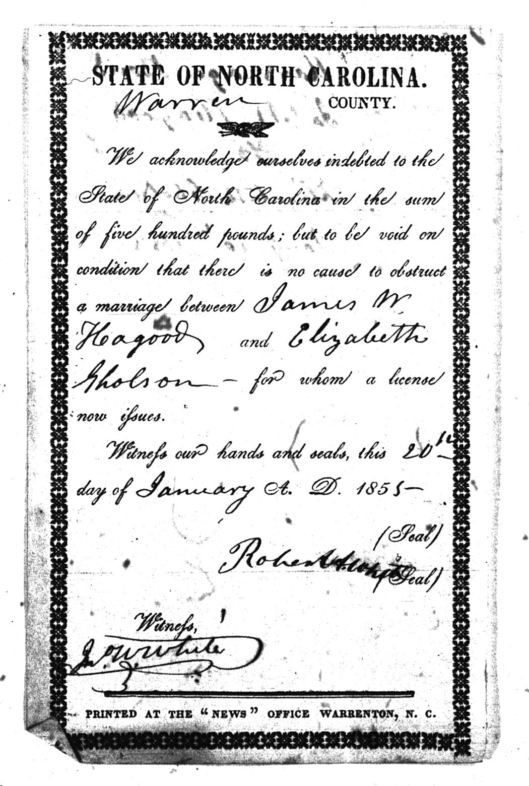 Warren County Marriage Bond Images 1779-1868 |