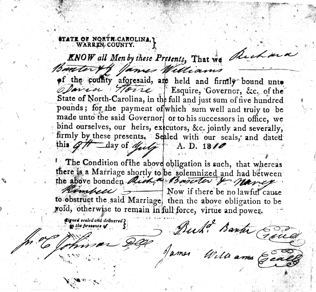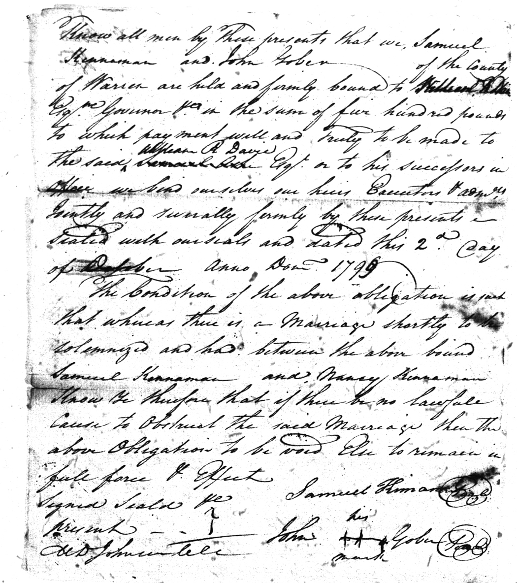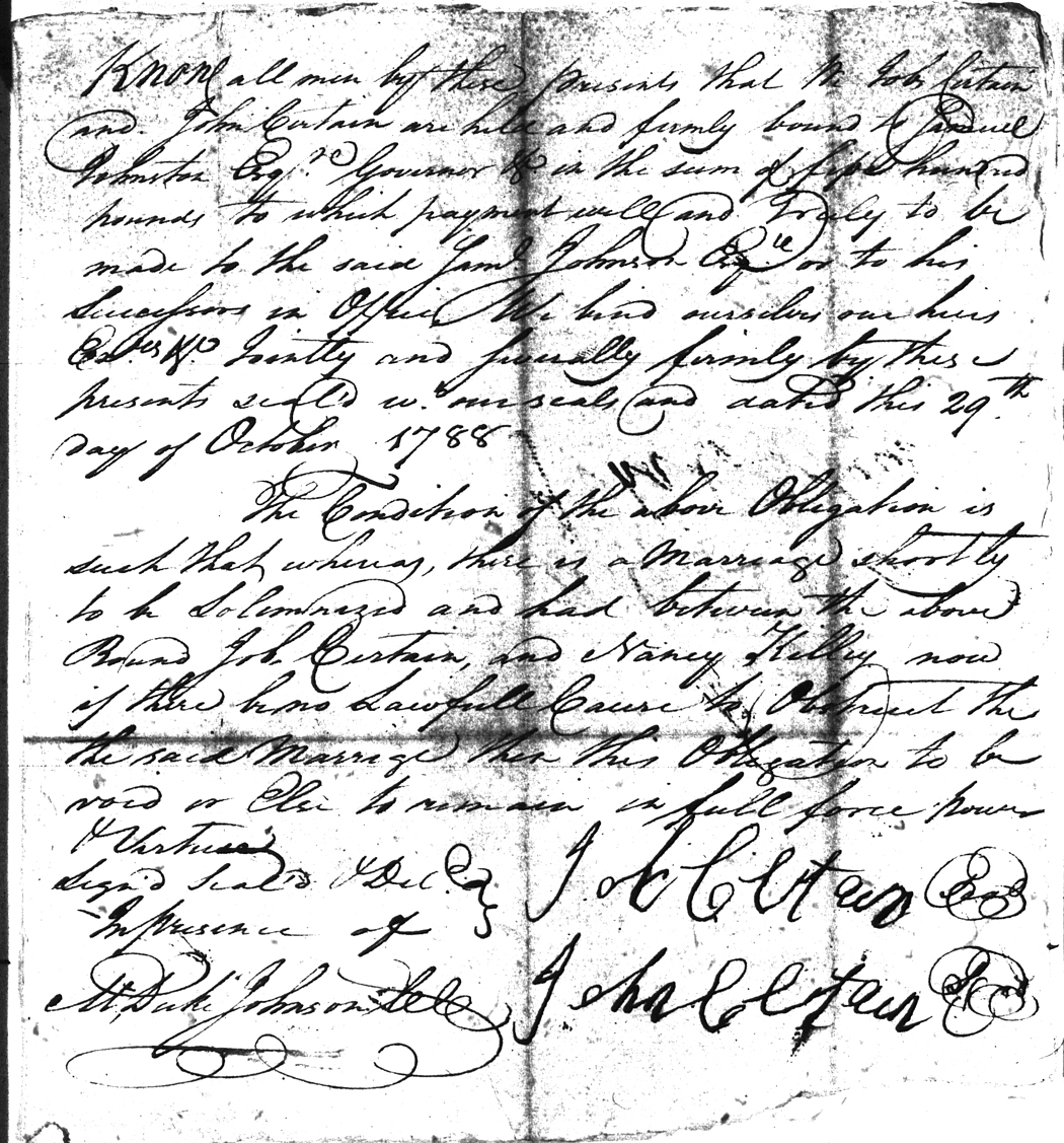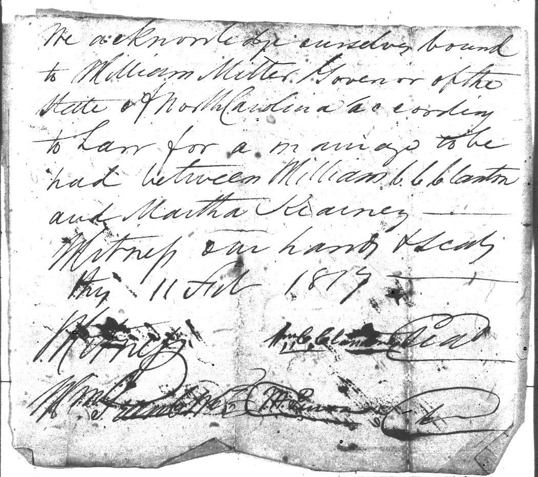 We should all thank Ginger Christmas-Beattie for all the work that has gone into getting the marriage bond images online. Not only has she done them once but twice after she found a way to tease the process to get a clearer image from the old microfilm. This is something I could not have done in years but Ginger has always been able to do more in less time than anyone I know. |