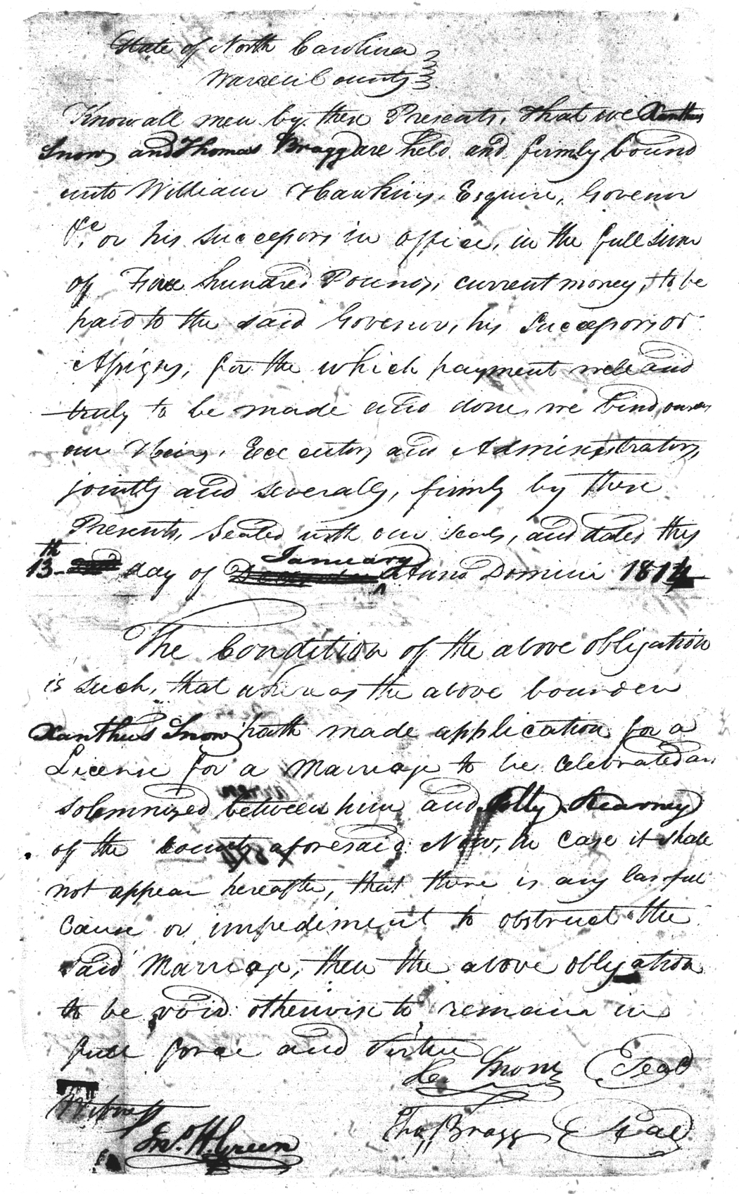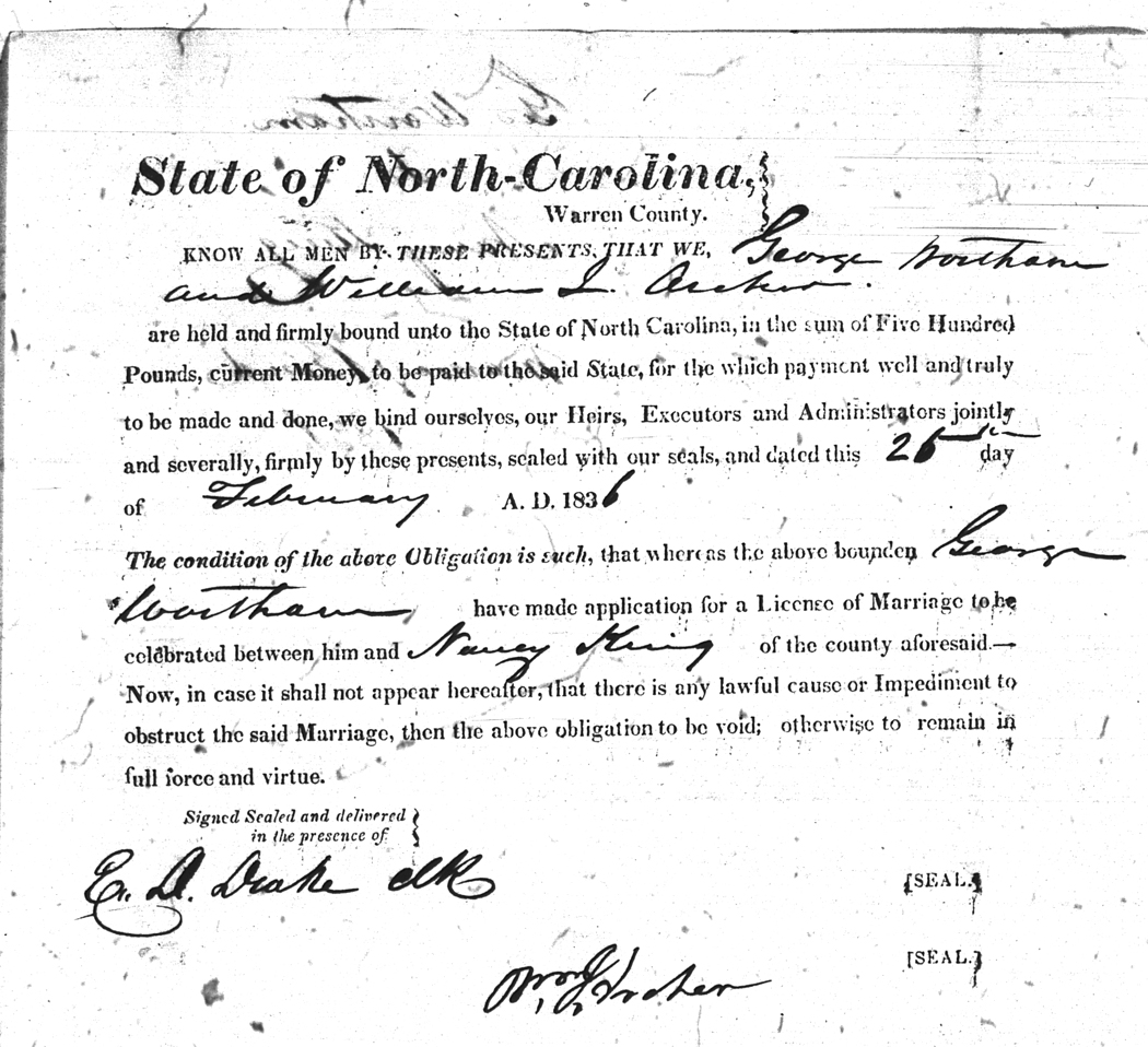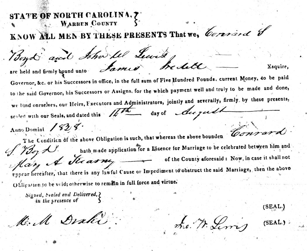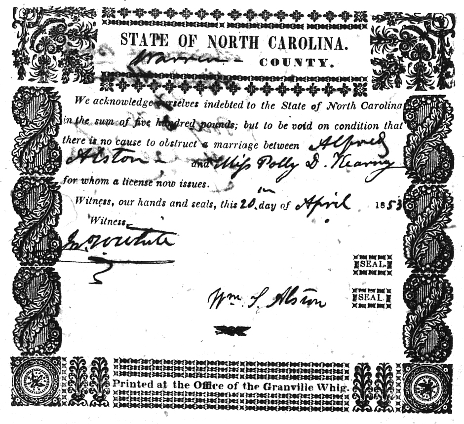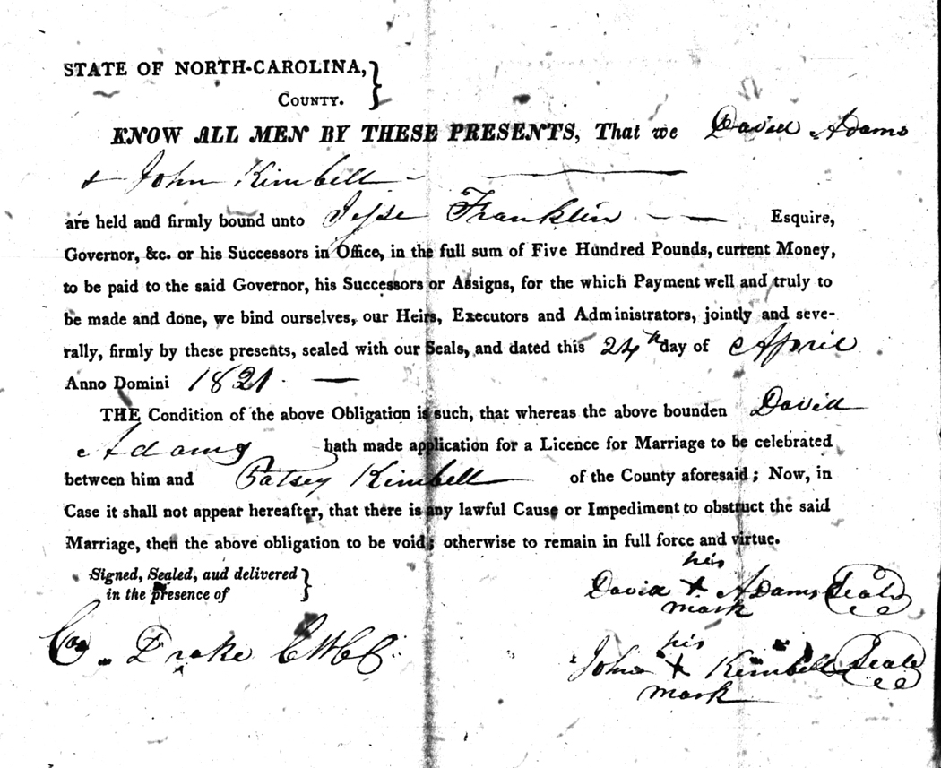 We should all thank Ginger Christmas-Beattie for all the work that has gone into getting the marriage bond images online. Not only has she done them once but twice after she found a way to tease the process to get a clearer image from the old microfilm. This is something I could not have done in years but Ginger has always been able to do more in less time than anyone I know. |