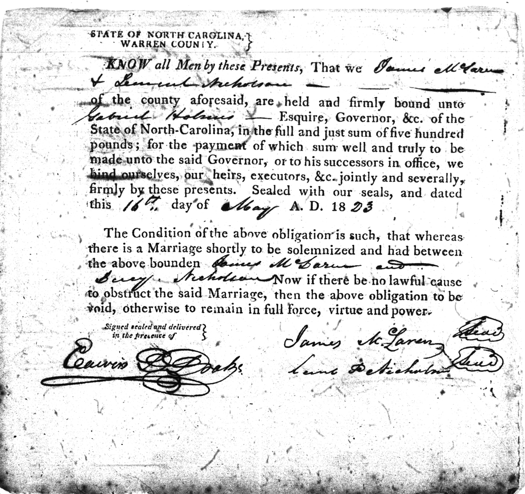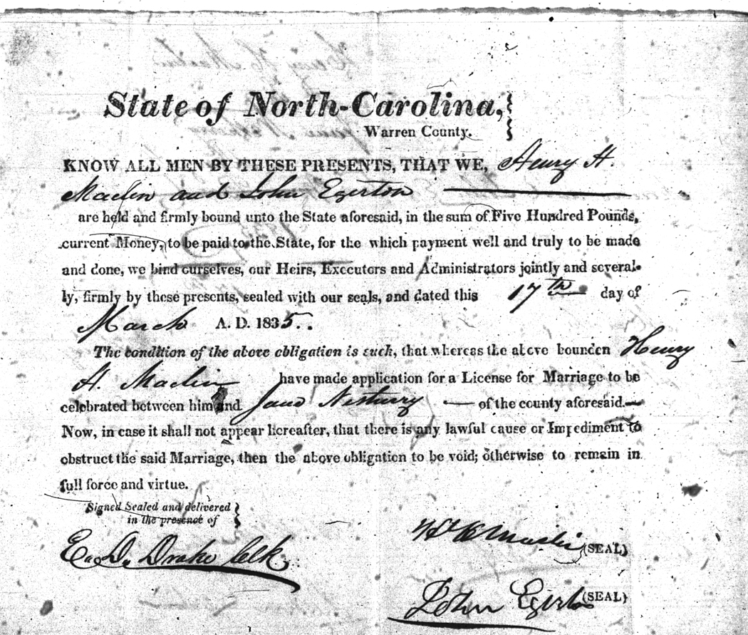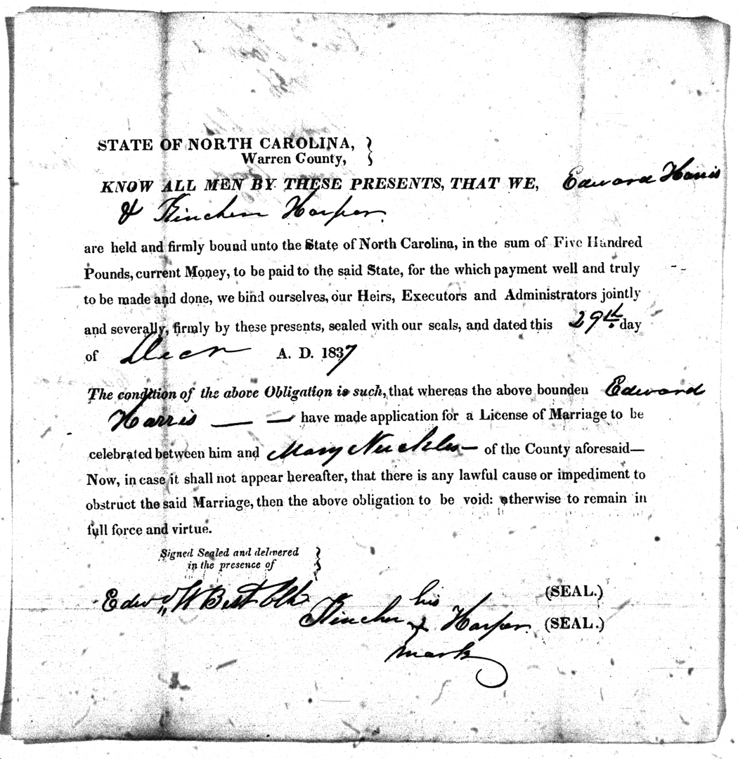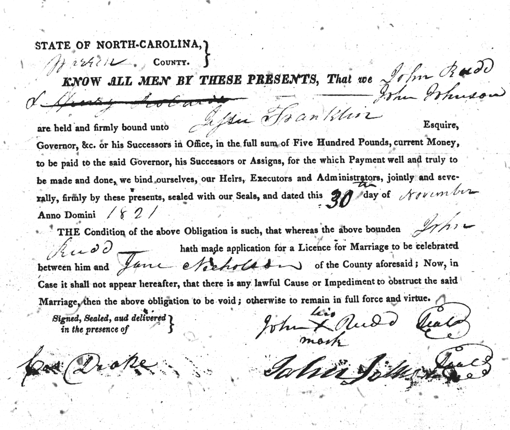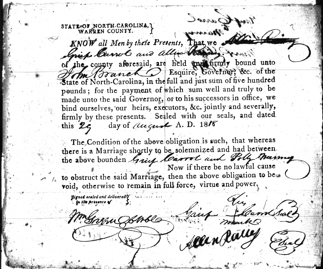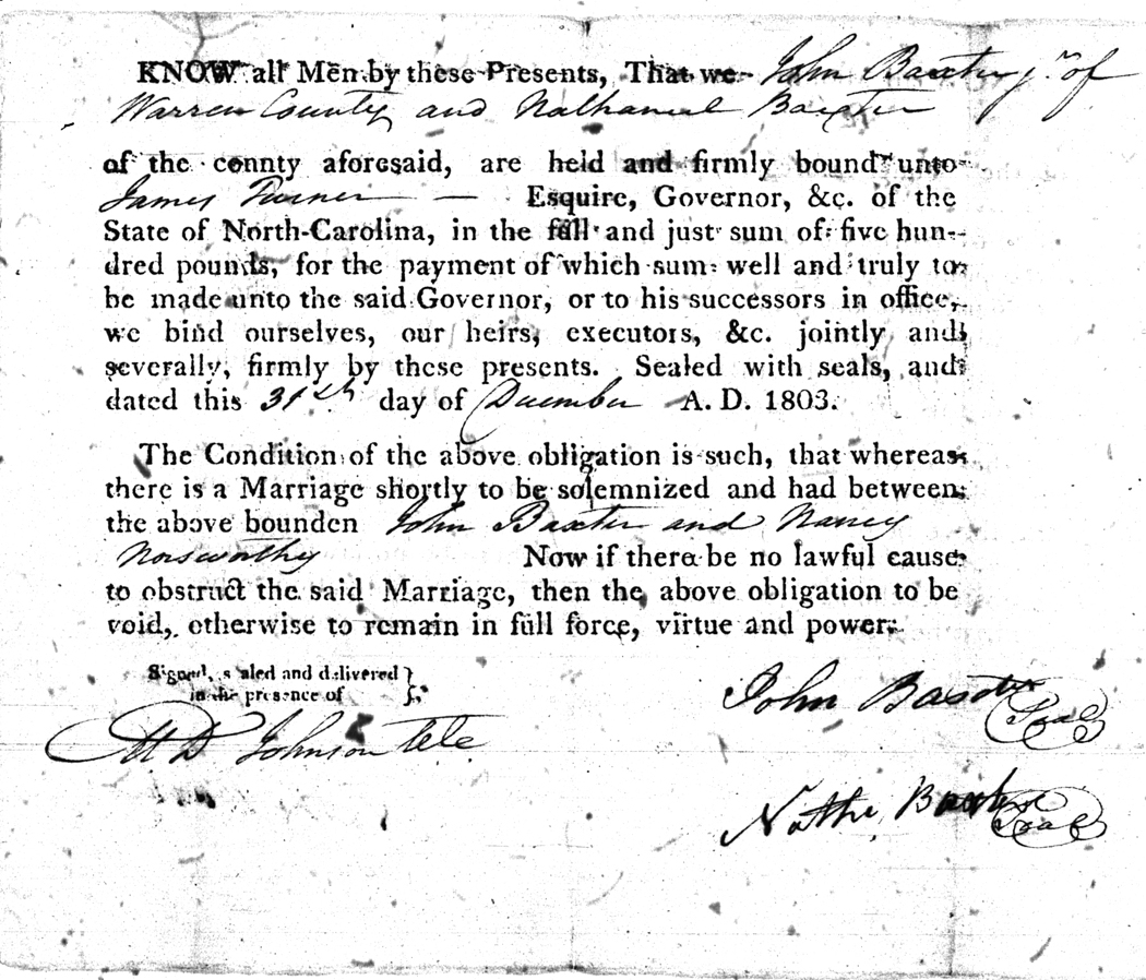 We should all thank Ginger Christmas-Beattie for all the work that has gone into getting the marriage bond images online. Not only has she done them once but twice after she found a way to tease the process to get a clearer image from the old microfilm. This is something I could not have done in years but Ginger has always been able to do more in less time than anyone I know. |