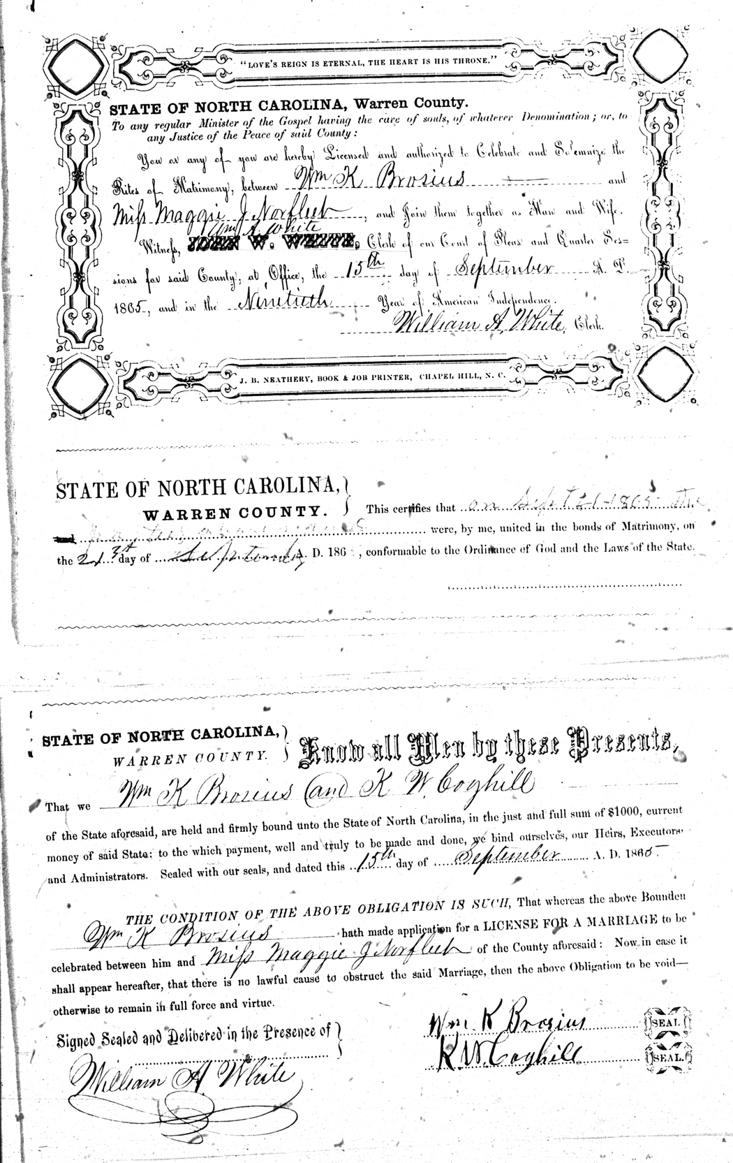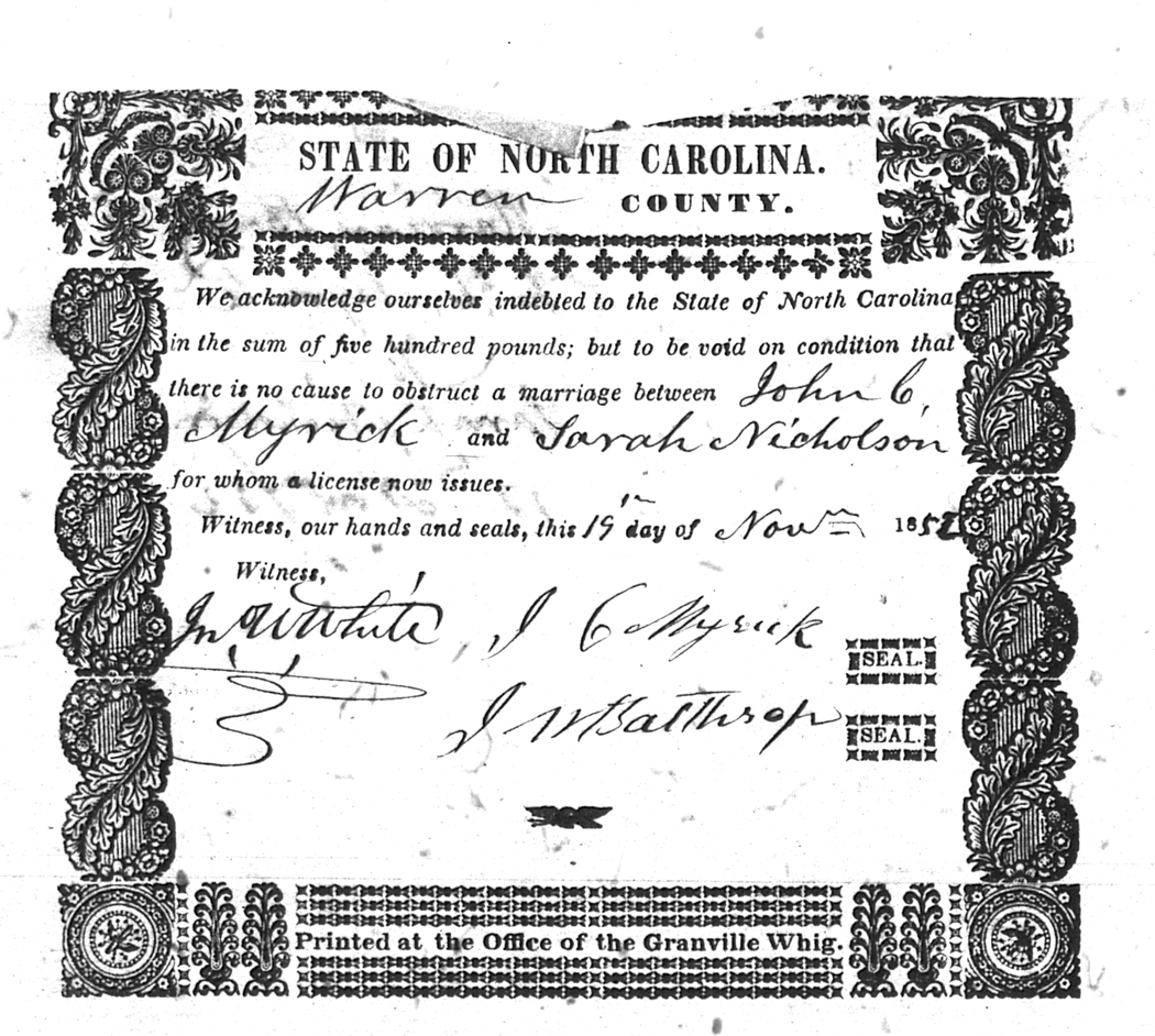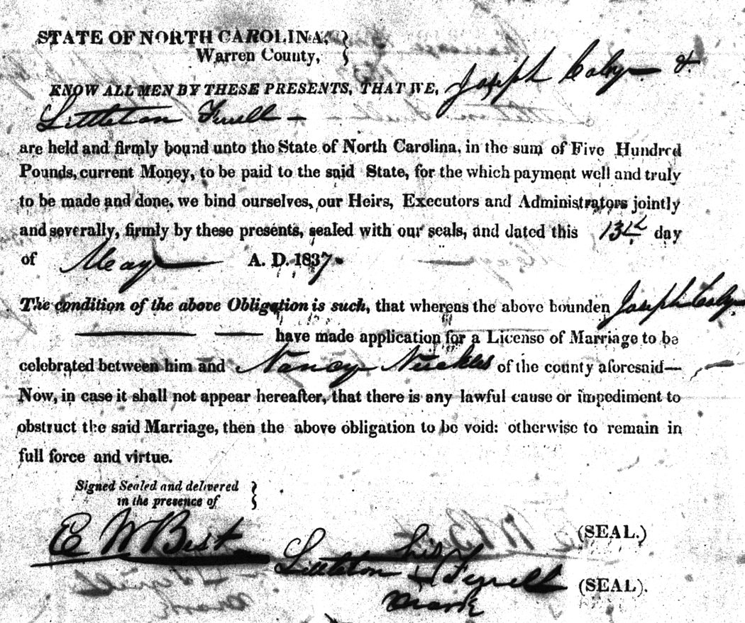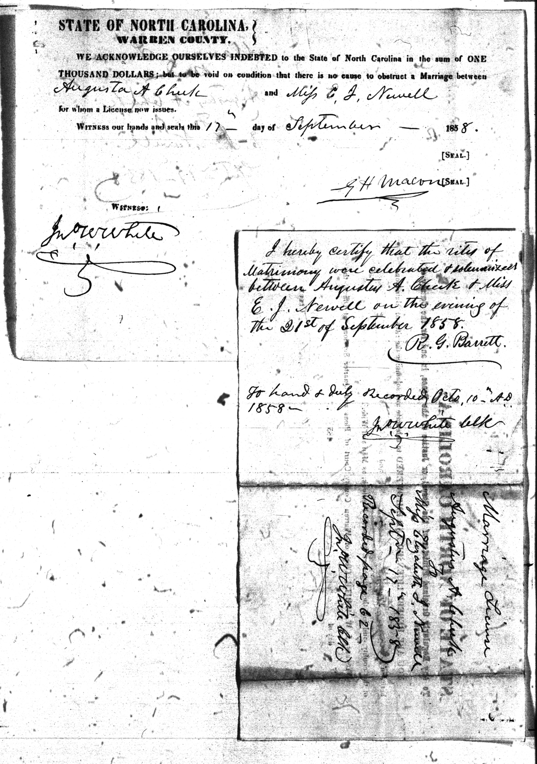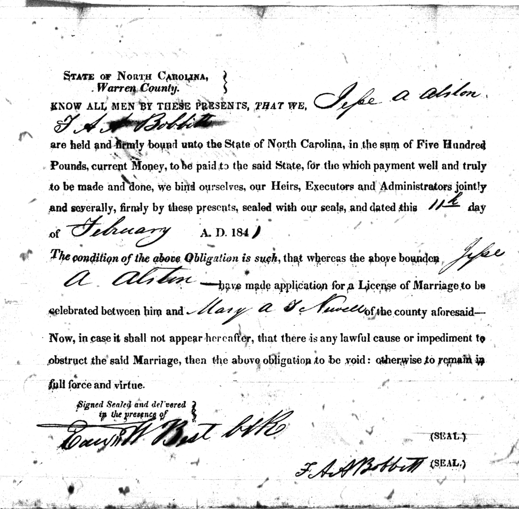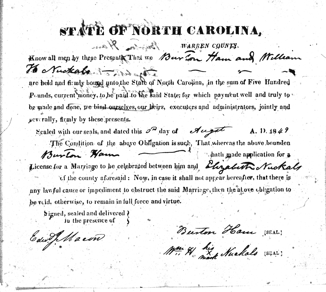 We should all thank Ginger Christmas-Beattie for all the work that has gone into getting the marriage bond images online. Not only has she done them once but twice after she found a way to tease the process to get a clearer image from the old microfilm. This is something I could not have done in years but Ginger has always been able to do more in less time than anyone I know. |