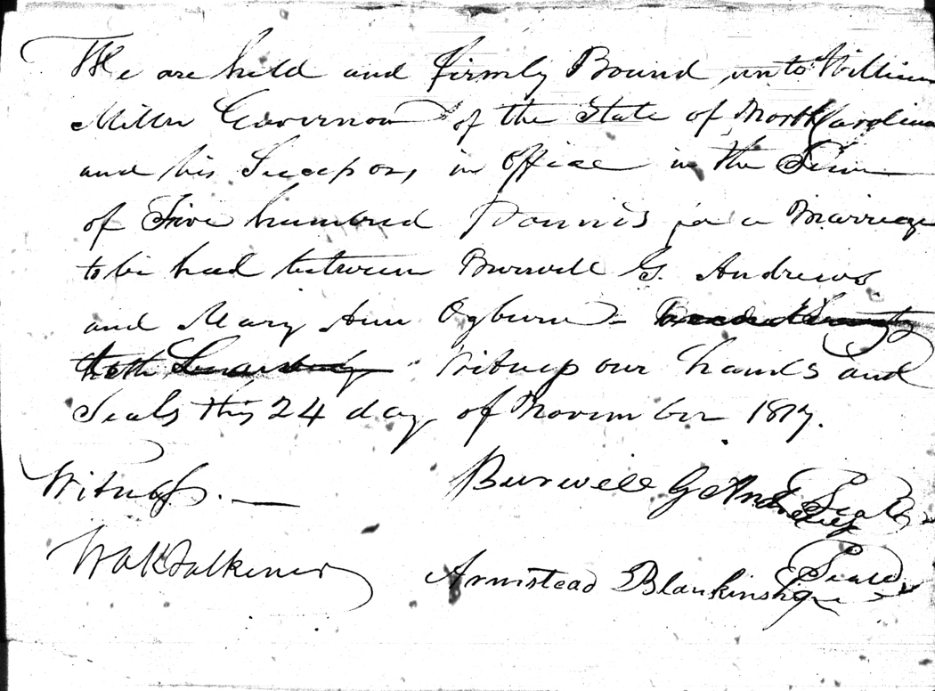 We should all  thank Ginger Christmas-Beattie for all the work that has gone into getting the marriage bond images online. Not only has she done them once but twice after  she found a way to tease the process to get a clearer image from the old microfilm.  This is something I could not have done in years but Ginger has always been able to do more in less time than anyone I know.