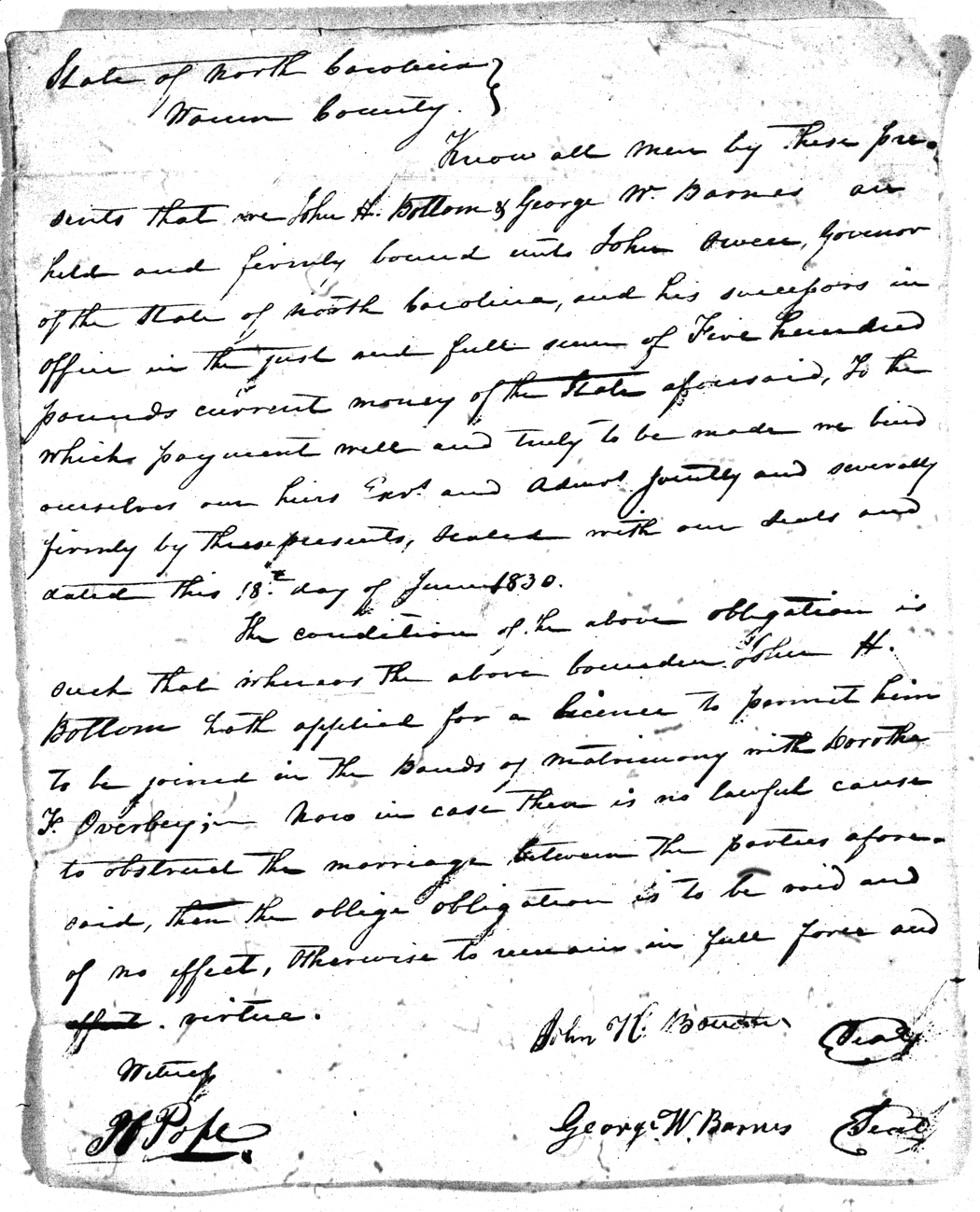 Overbey Dorotha F. Bottom John H. 18 Jun 1830   George W. Barnes White