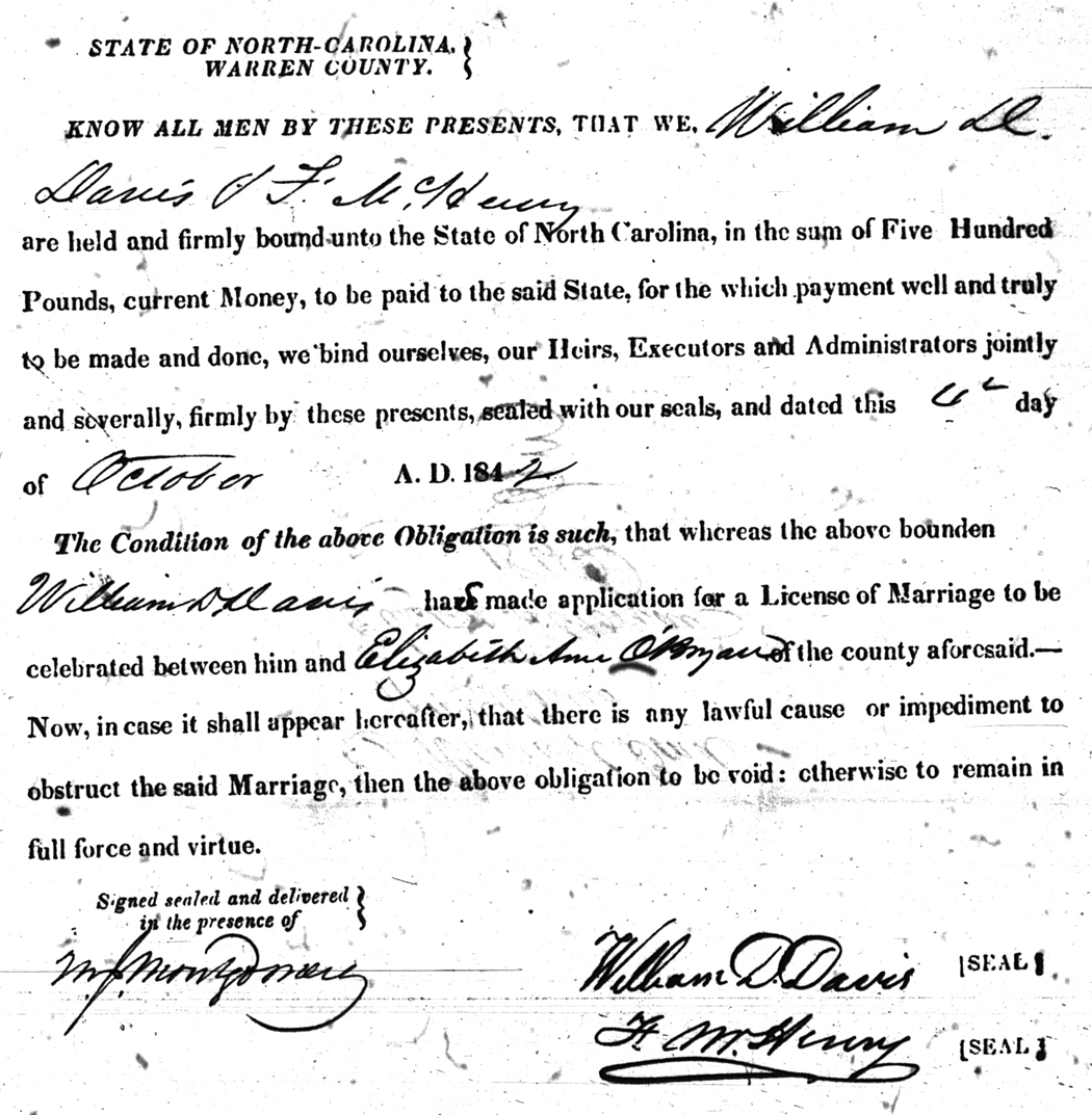Obryan Elizabeth Ann Davis William D 04 Oct 1842   F. M. Henry White