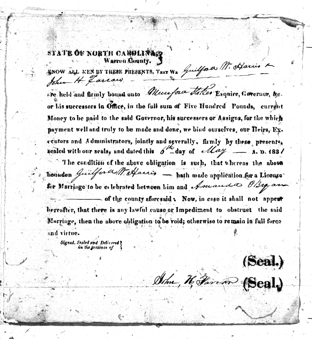 Obryan Amanda Harris Guilford W 06 May 1831   John H. Farrow White