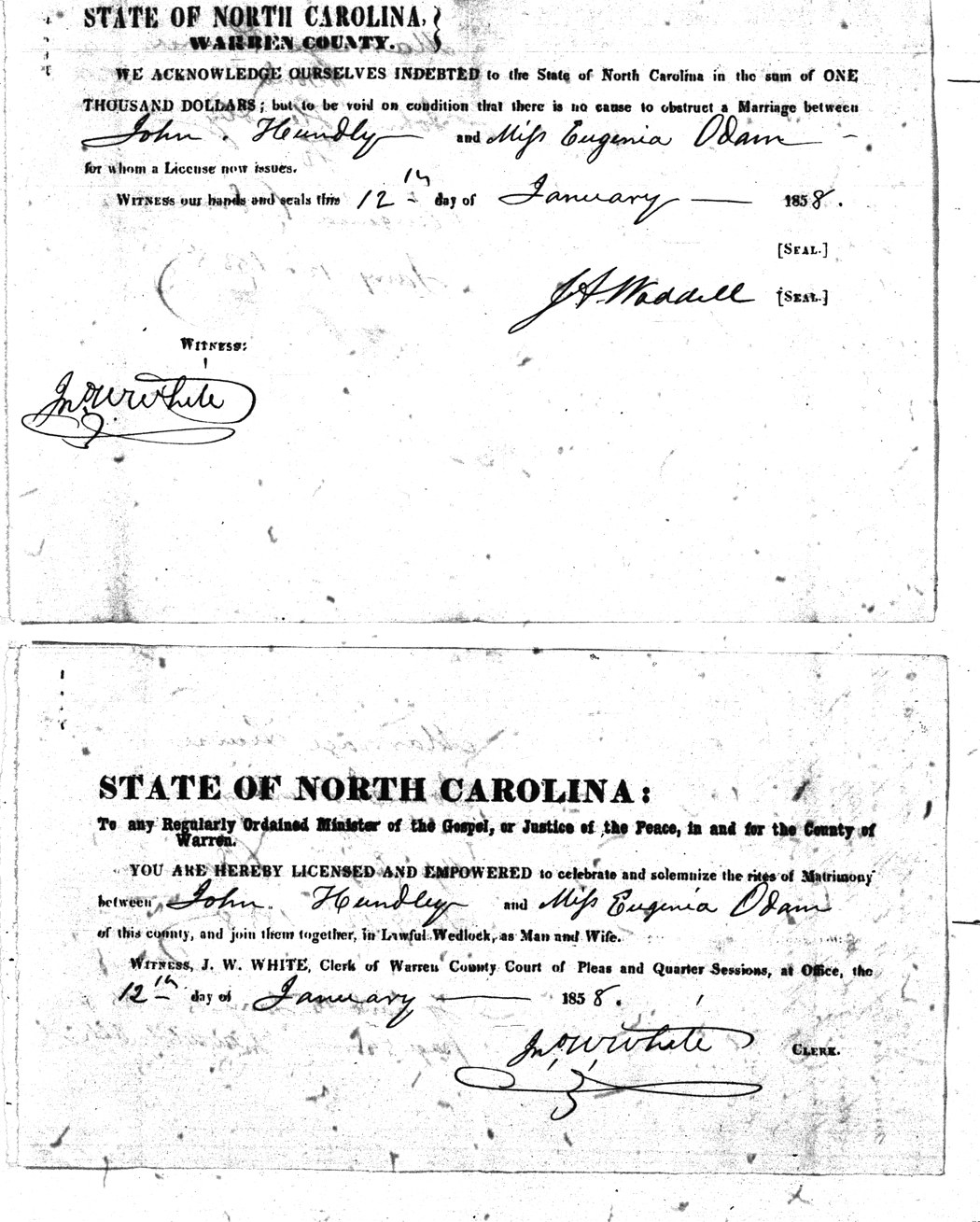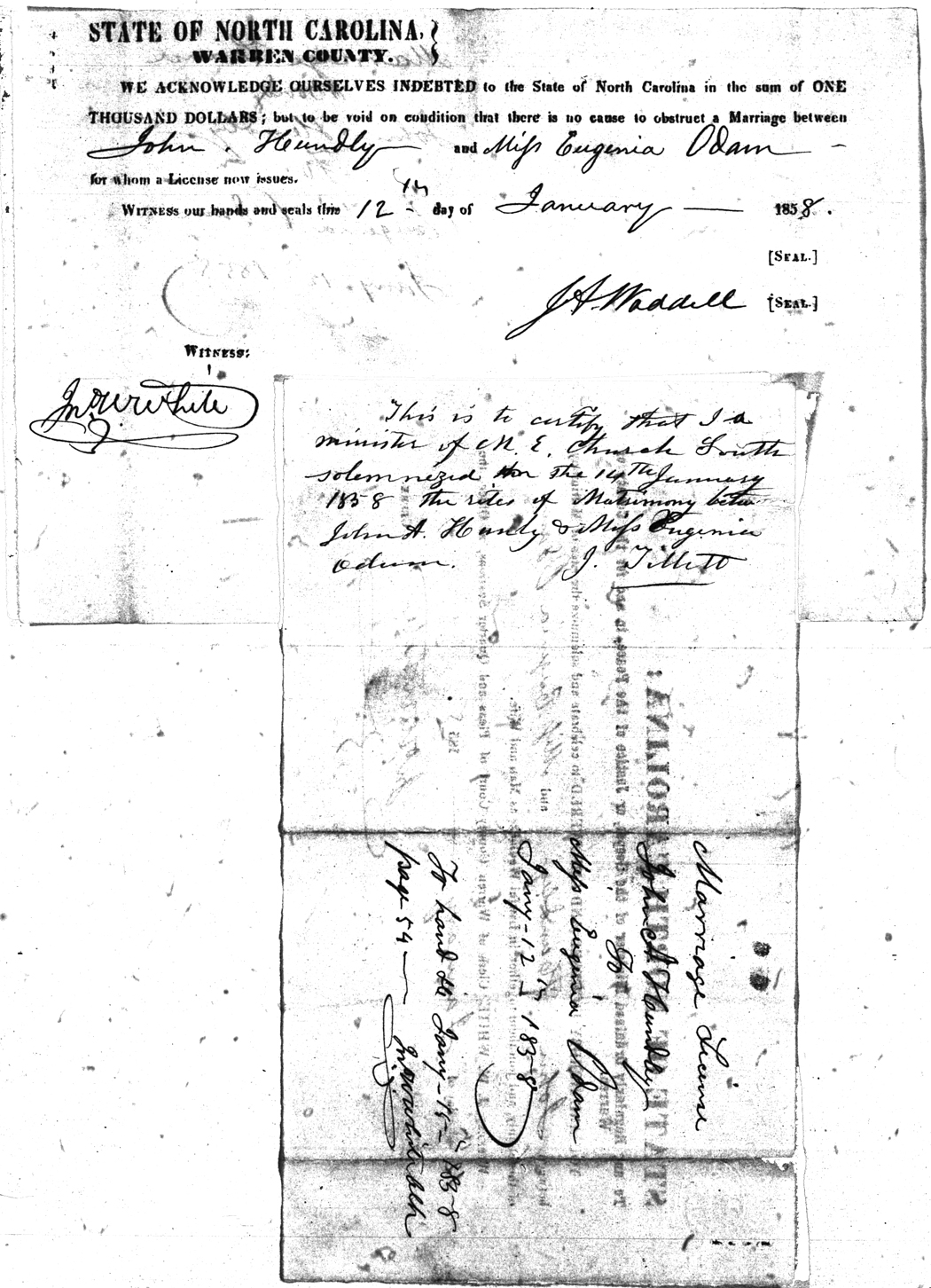 Odam Eugenia Hundley John 12 Jan 1858 12 Jan 1858 J. A. Waddell White