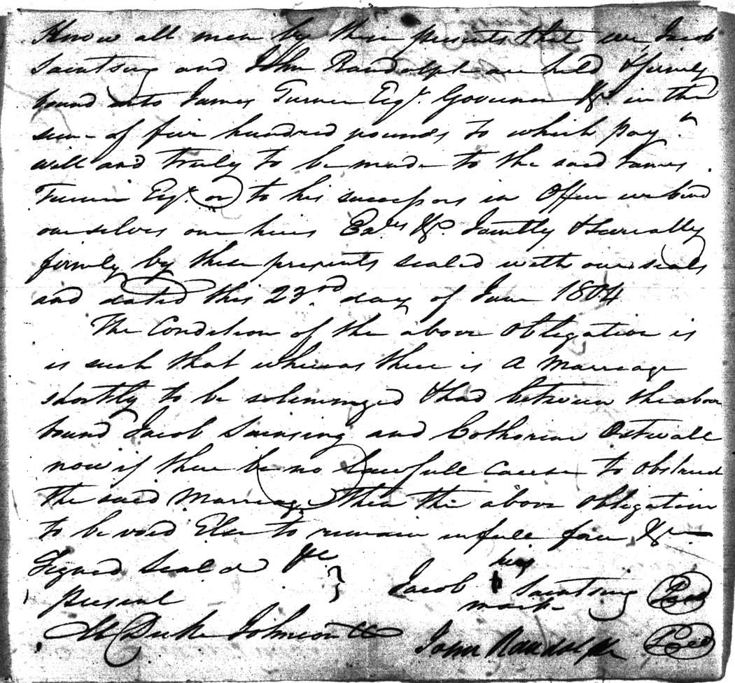 Ostwall  Catharine Saintsing  Jacob 23 Jun 1804   John Randolph White