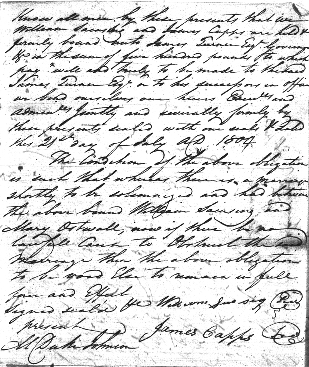 Ostwall  Mary Saintsing  William 21 Jul 1804   James Capps White