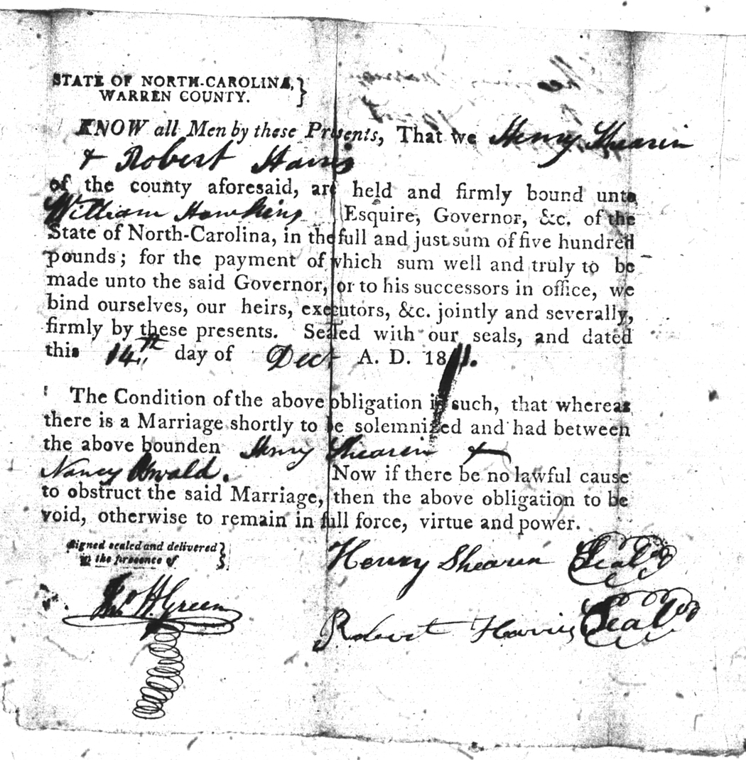 Oswald  Nancy Shearin Henry 14 Dec 1811   Robert Harris White