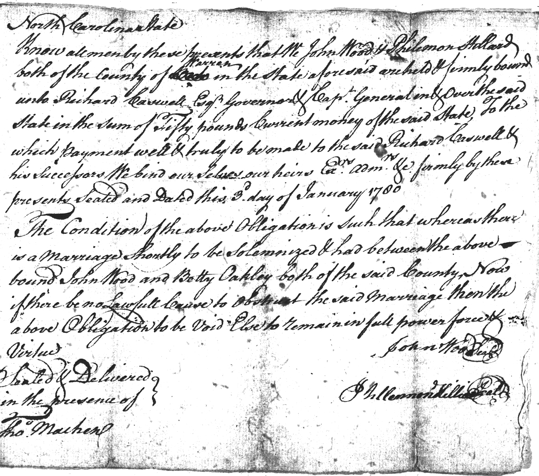 Oakley Betty Wood John 03 Jan 1780   Philemon Hilliard White